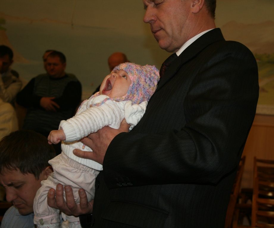 Пресвітер Коцюбайло Микола Петрович звернувся до батьків та церкви із такими словами: "Ми сьогодні не звершуємо хрещення над дітьми, адже це ми робимо тоді, коли наші діти виростають, особисто пізнають Бога і мають власне бажання бути членами Божої Церкви. Зараз ми звершуємо молитву за дітей - це служіння присвячення. Молоді сім'ї присвячують своїх дітей від сьогоднішнього дня Богу.